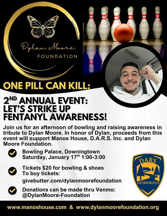 In January, 2025, Sarah Wilkinson sought to commemorate her son, Dylan, in a meaningful way. She decided to organize a fundraiser for a rehabilitation facility that had greatly supported Dylan during his high school years. Collaborating with the Bowling Palace in Downingtown PA, Sarah arranged a fundraising event where 100 percent of the proceeds were directly donated to Manos House, enabling them to continue their vital work with young men. The event was a tremendous success, and through bowling and raffles, Sarah managed to raise over $5,000 for Manos House. This experience brought her joy as she gave back while keeping Dylan's memory alive. Encouraged by her brother Ryan, she considered hosting more events and establishing a non-profit organization in Dylan's honor. Embracing this idea, Sarah took the initiative, leading to the creation of the Dylan Moore Foundation.